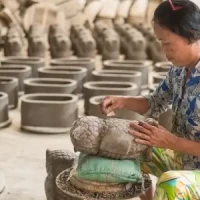 At dawn, the ship sails for the port of Kampong Chhnang. Located some 56 miles northeast of Phnom Penh, the town of Kampong Chhnang is one of the largest fishing ports on the Tonlé Sap. It is famous for its fish farms and pottery. Not to be overlooked either are the products of the Thnot tree – a mellow-tasting, caramel-coloured sugar sold in large cakes and palm wine. The tree grows abundantly in the area and is one of Cambodia’s national symbols. Lunch on board as we set sail to Koh Chen.