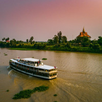 Breakfast is served before a morning at leisure. We depart Phnom Penh at 11.30am, with lunch served en route to Kampong Tralach. We visit the spectacular Wat Kampong Tralach Leu Pagoda before returning to the ship. Dinner is served onboard and the ship moors overnight.